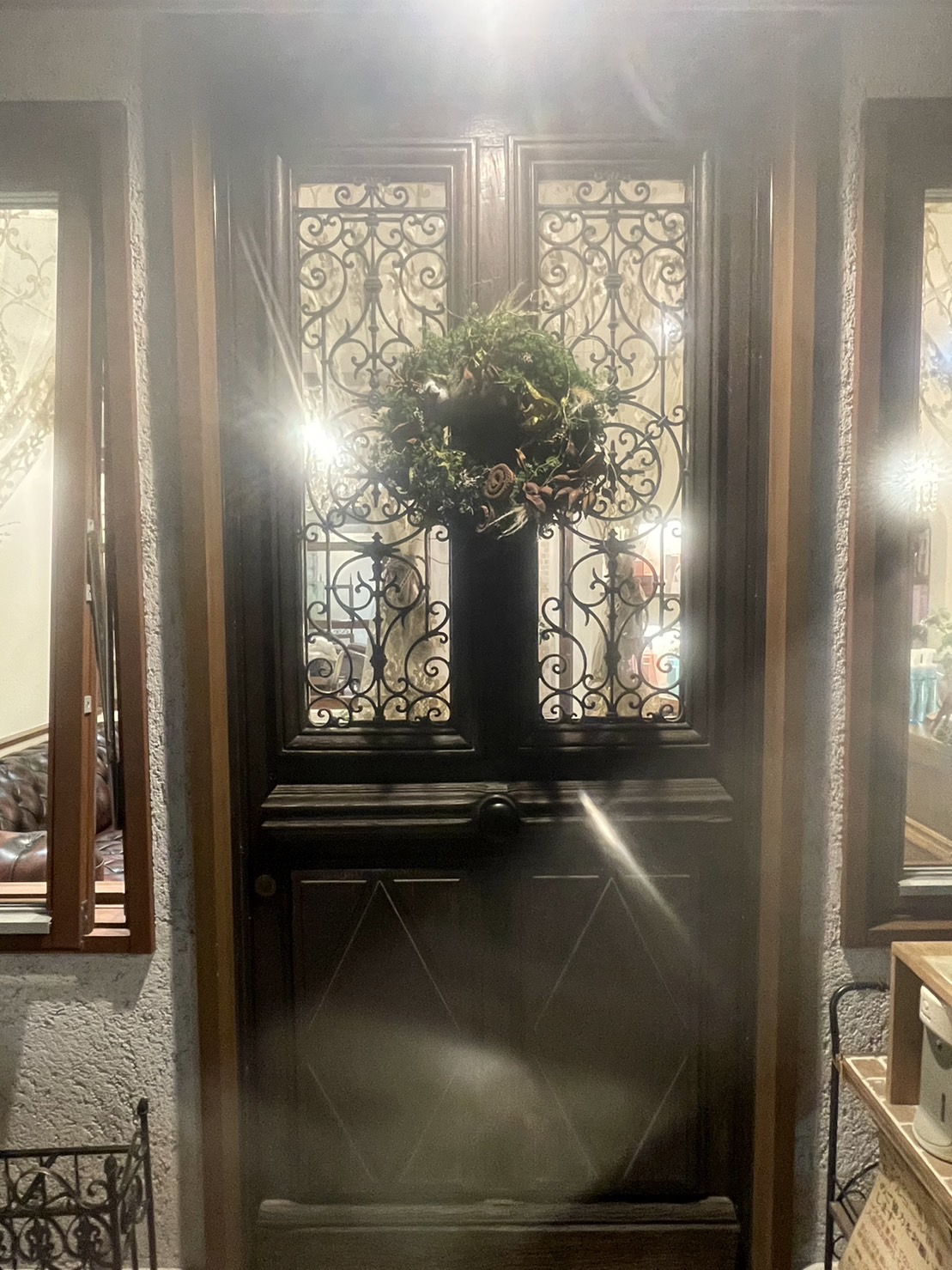 これから寒くなってくると、冬の夜のイルミネーションも素敵になってきますよね。お店から溢れる光と、クリスマスリースが素敵な写真に撮れたので、こちらもぜひ!