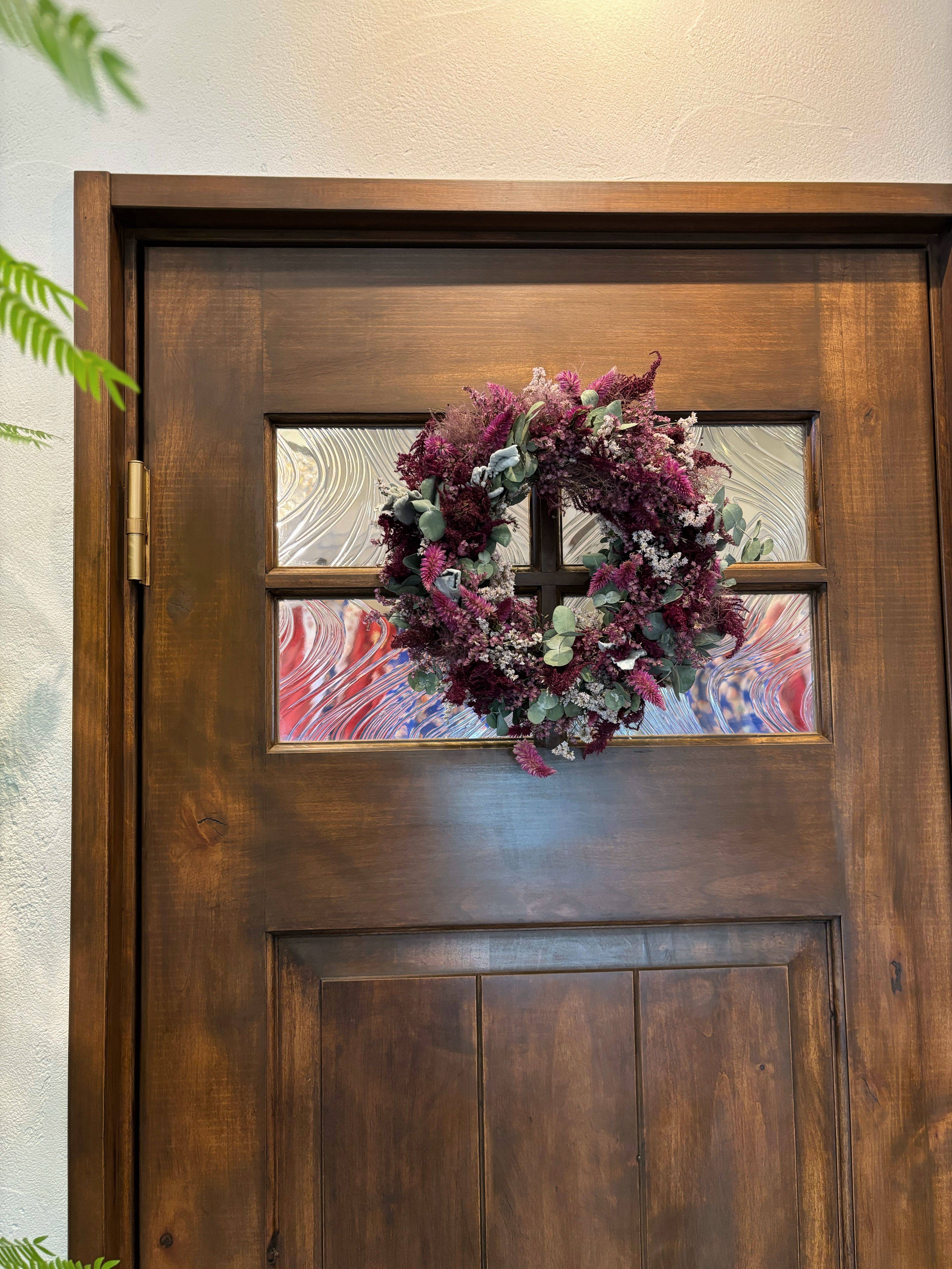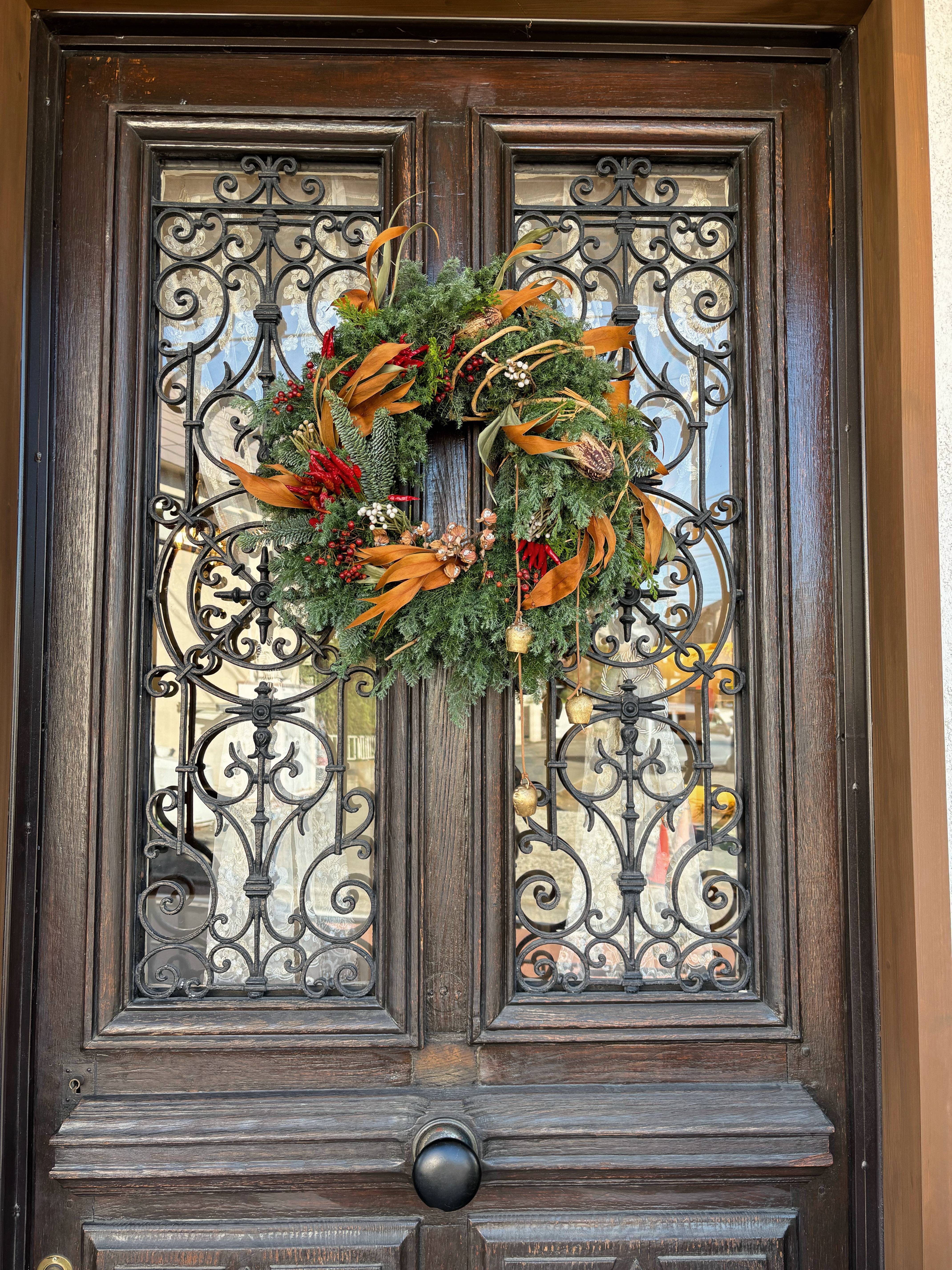 一緒に店内ドアのリースも使ってもらい、こちらはまた雰囲気の違う、可愛いらしい仕上がりにして頂きました!
