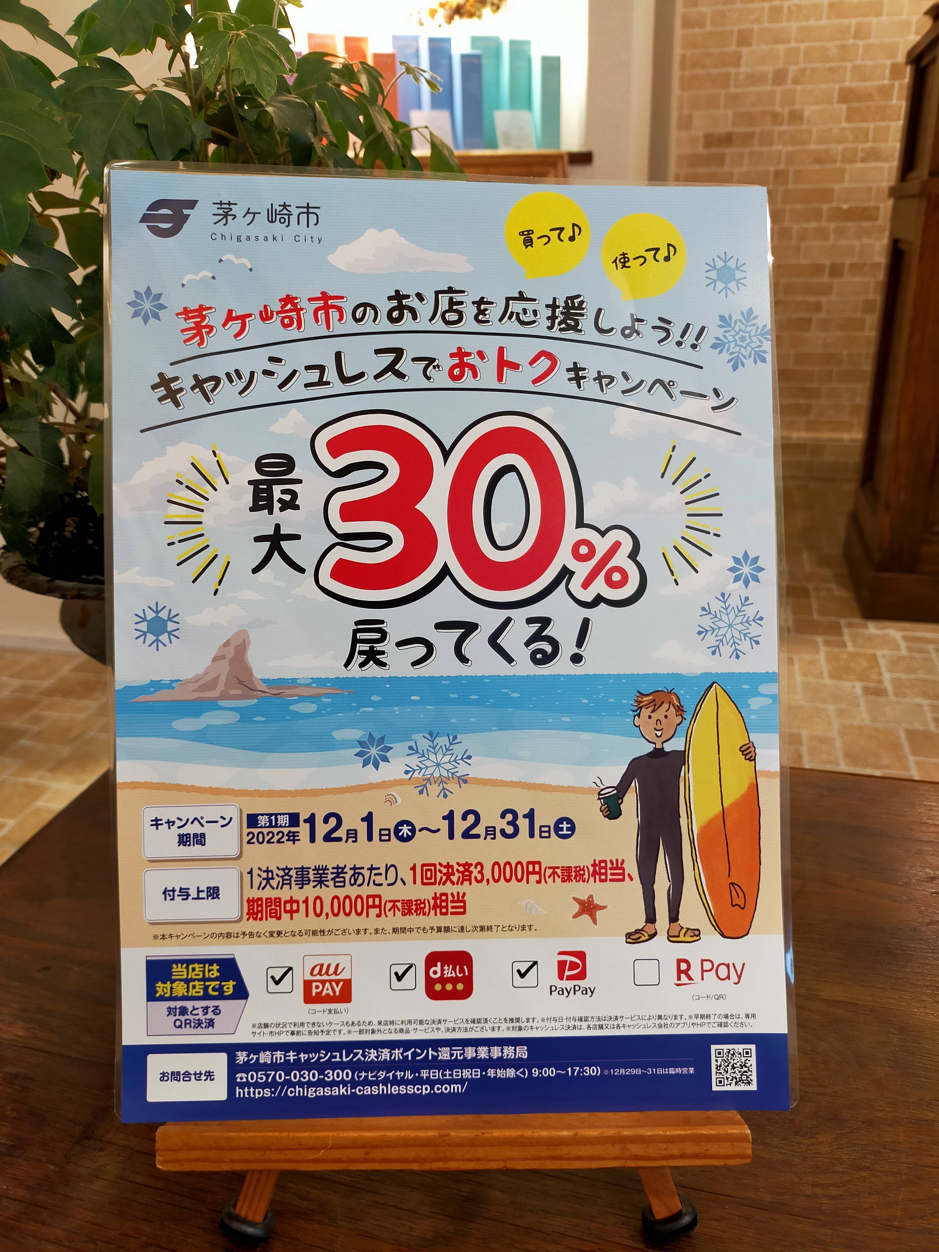 12月1日からスタートしている、茅ヶ崎キャッシュレスキャンペーンをIRISでもお使い頂けます。